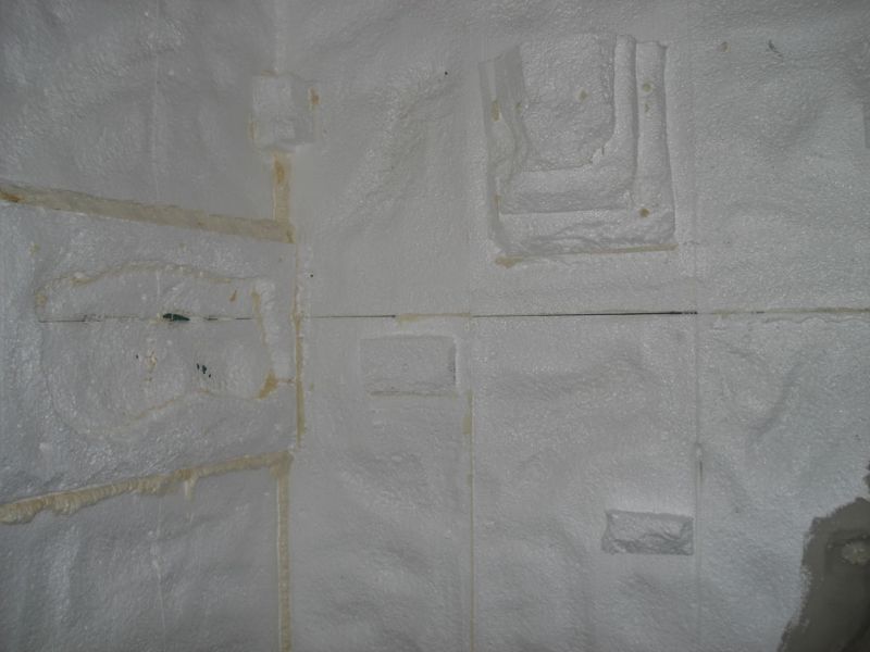 Nach dem das alles erledigt war ging es an die #Styropor #Rückwand, erst mal alle Platten miteinander verkleben sowie an die Rückwand mit Silikon / Montagekleber und mit Schrauben noch Fixiert. Entstehende Fugen sollten hier noch nicht mit Bauschaum gefüllt werden! Nun nach anbringen der Styroporplatten ging es darum eine möglichst Natur nahe Felslandschaft zu schaffen, dies erreicht man mit einer Heißluftpistole.