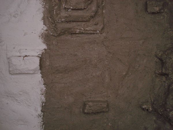 Nun kommt die zweite Schicht die genau so aufgetragen wird wie die erste, ich hab meist mit den Pinsel mir ne Ladung aus dem Eimer genommen und die an die Wand geklatscht (deswegen der Dreck) ab und an hab ich immer mein zweifel bekommen, da dies extrem aufwendig ist und extrem viel Zeit in Anspruch nimmt.