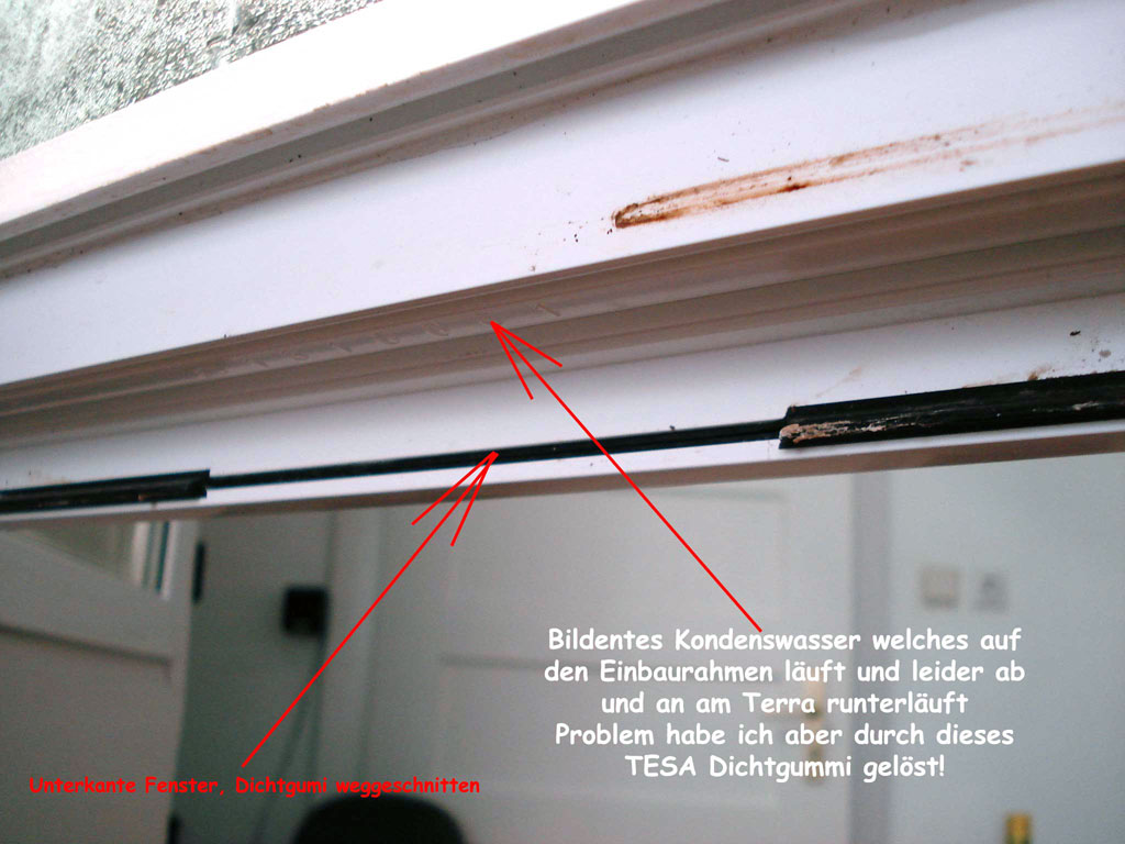 Da ich anfangs Probleme hatte das mir ständig die Fenster von innen beschlagen, hab ich einige Dichtgummis bearbeitet, so dass eine bessere Lufzirkulation an den Scheiben herrscht. Dies hab ich mal auch auf den Bildern mit vermerkt.