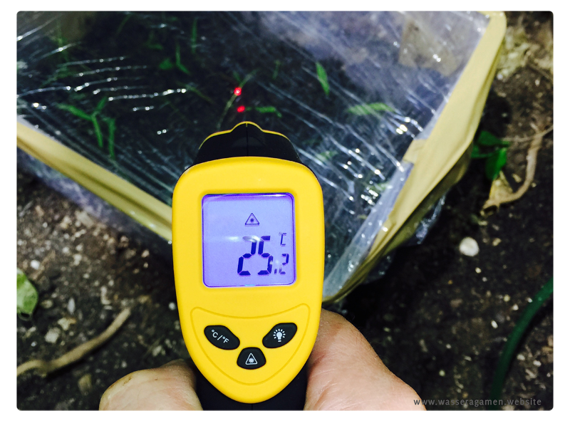 Die Temperatur beträgt konstant 25°C, nacht fällt sie auf 23°C ab.