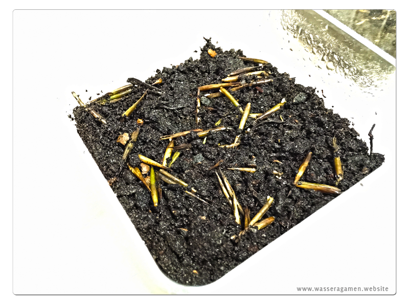 Heißt ich hab die Heimchenboxen zu 50% mit der Kakteenerde gefüllt und den Samen von Bambusa arundinacea und Moso-Bambus Phyllostachys pubescens / edulis nur auf das Substrat gelegt, leicht fest gedrückt und mit einer Sprachflasche angefeuchtet. Deckel drauf und in die Licht durchflutete Ecke im Terrarium gestellt.