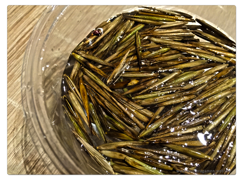 Das ganze kam dann für 24h in Handwarmes Wasser, der Bambussamen soll Quellen...